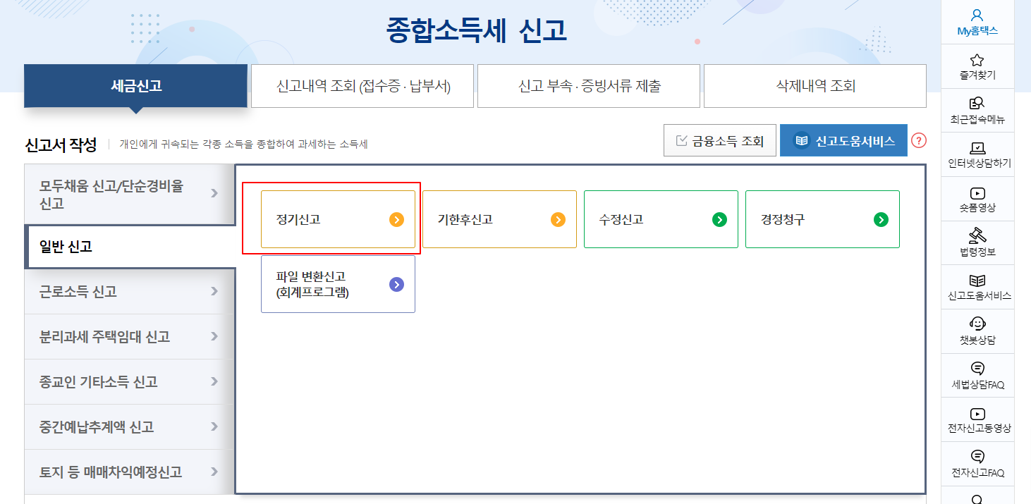 물론 유튜브 수익만 있더라도 일반신고를 클릭하고 정기신고를 하면 된다.